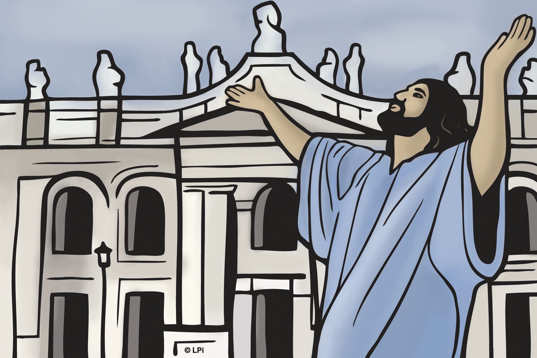 With a gesture befitting an eternal priest without father or mother, without lineage (cf. Hb 7:3), he opens his arms to the whole human race.